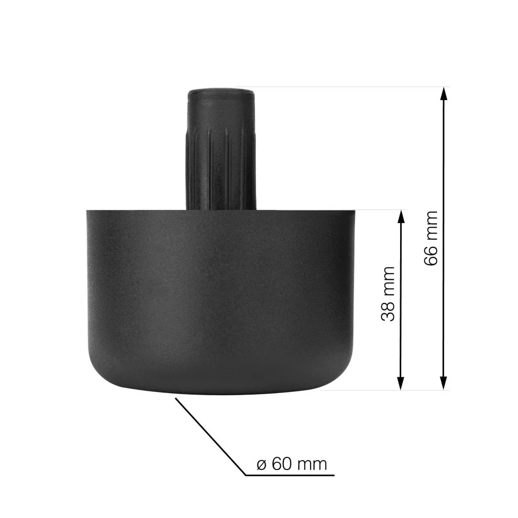 Műanyag bútorcsúszka fekete kivitelben, 60 mm átmérővel és 38 mm magassággal. A műanyag átmérője.