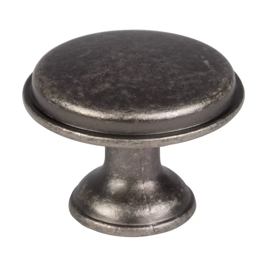 Rusztikus Dasa bútorgomb antik cink felülettel, 28 mm átmérőjű és 20 mm magas. Rögzítőcsavarral együtt.
