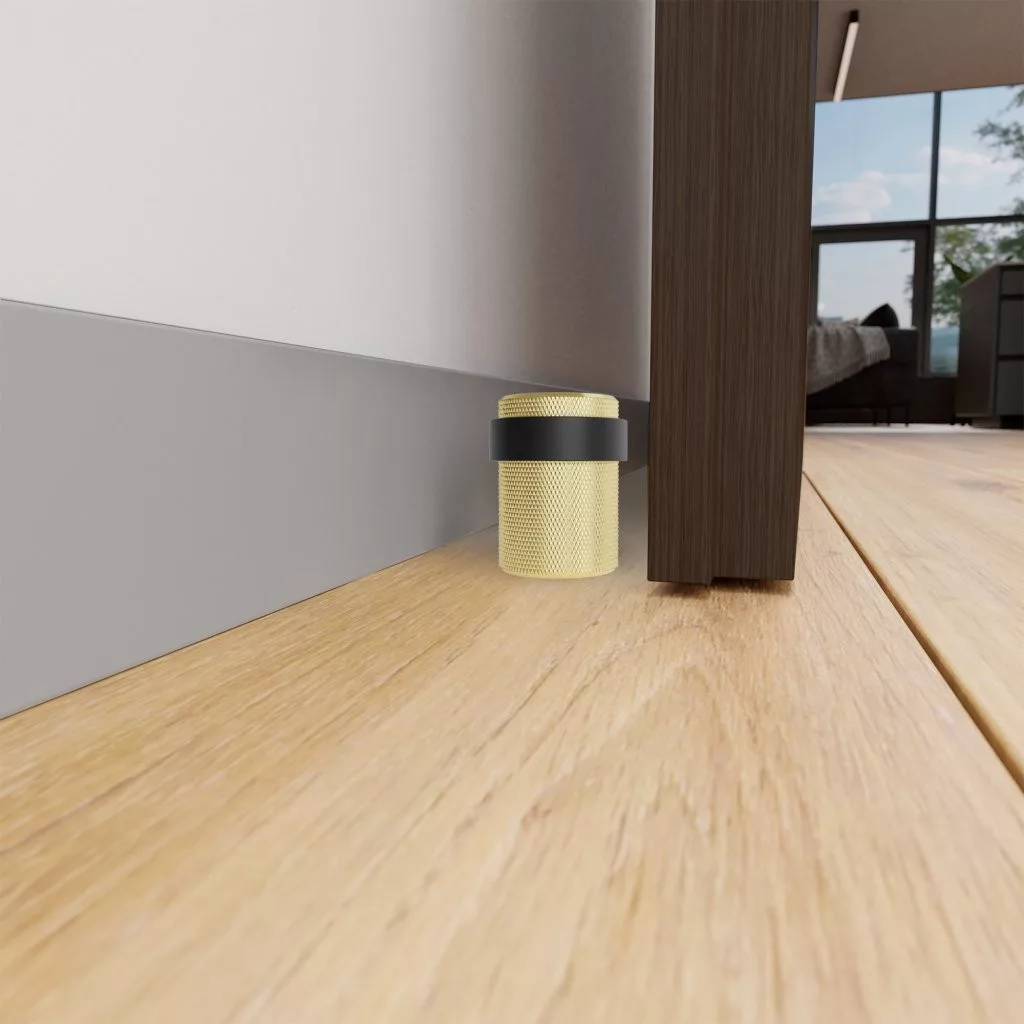 34 mm átmérőjű és 40 mm magas, dizájnos fém ajtóütköző sárgarézből. Védi a falakat és a bútorokat az ajtó ütődéseitől. Minden padlótípusra csavarozható. A rögzítőanyagok mellékelve.