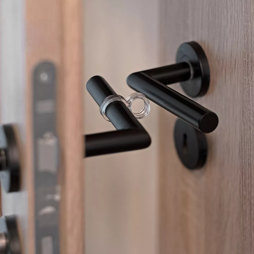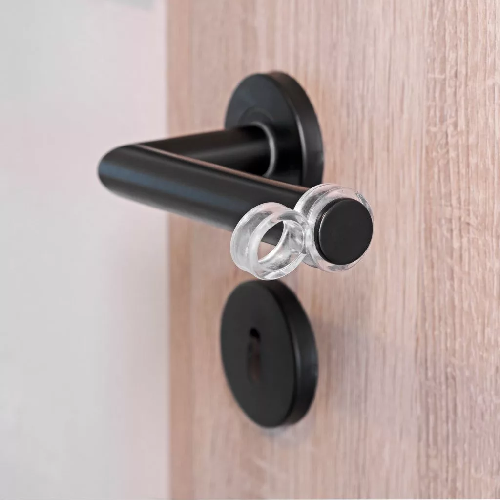 Átlátszó, dizájner kilincsütköző 15 és 18 mm belső átmérővel. Védi a falakat és a bútorokat az ajtó- és ablakkilincsek ütéseitől. A ütköző ovális és kerek kilincsekre is felszerelhető. A csomag 2 db-ot tartalmaz.