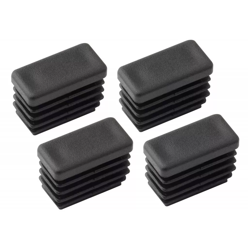 Téglalap alakú, fekete színű, négyzet alakú műanyag dugó, 20x10 mm külső méretekkel, profilok lezárására és szivárgások elleni védelemre. A csomag 4 db-ot tartalmaz.