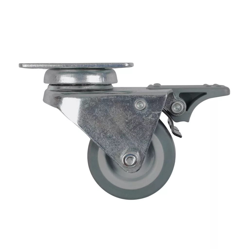 Forgatható, dupla szerkezeti kerék, 50 mm átmérővel, fékkel. Teherbírás akár 70 kg.