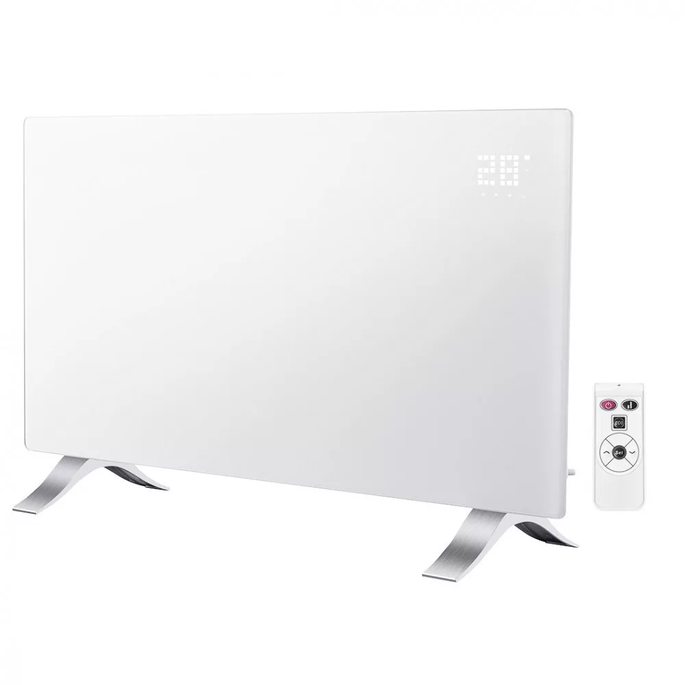 Elektromos konvektorfűtés 2000W, IP24, WIFI, X-alakú melegítő, 24 órás programozó a készüléken, vezérlés a TUYA alkalmazáson keresztül, nyitott ablak-érzékelő, fagyálló szenzor, falra szerelhető és alumínium lábak, termék méretek 835 x 450 x 105 mm, fűtőfelület: 18-20m2