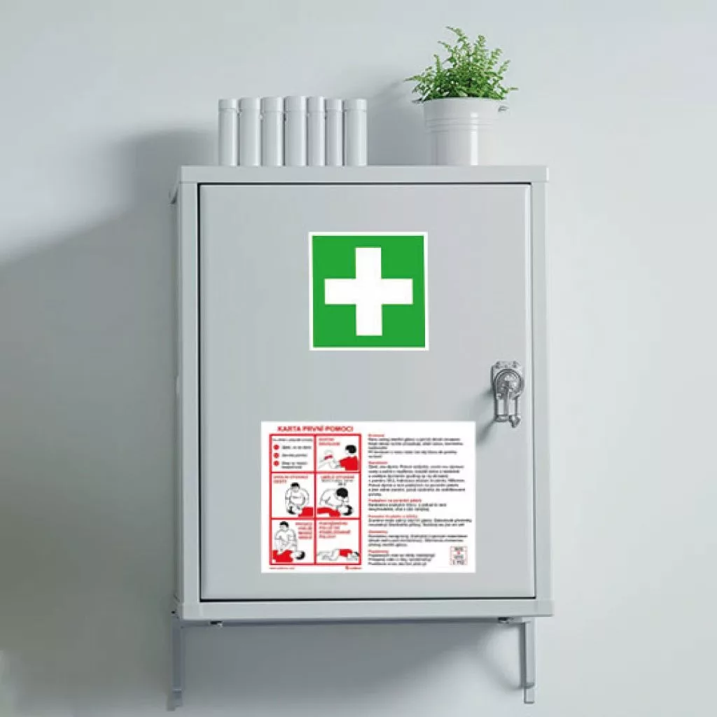 Öntapadó elsősegély szimbólum az ELSŐSEGÉLYCSOMAG jelölésére