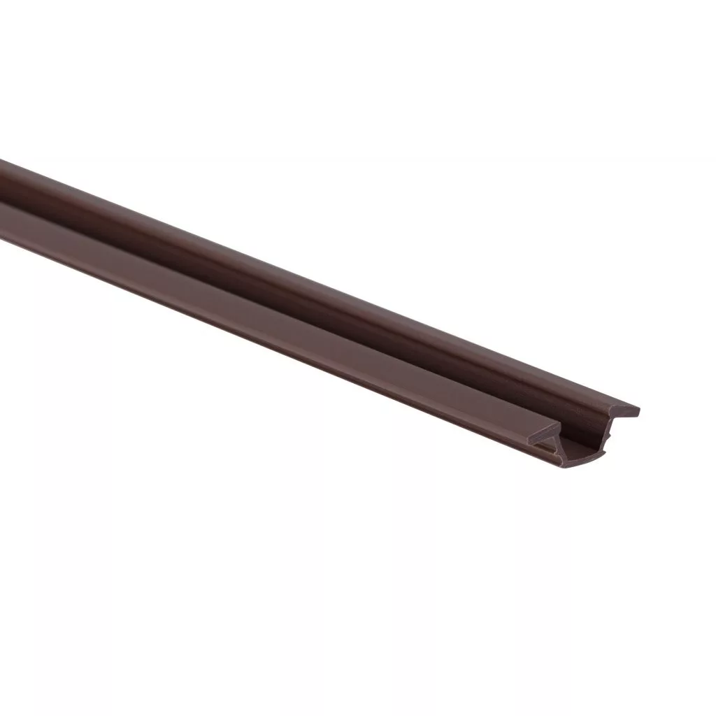Barna felső és alsó vezetősín, 2000 mm hosszú, 16 mm széles és 6 mm magas. A szerelőkészlethez.