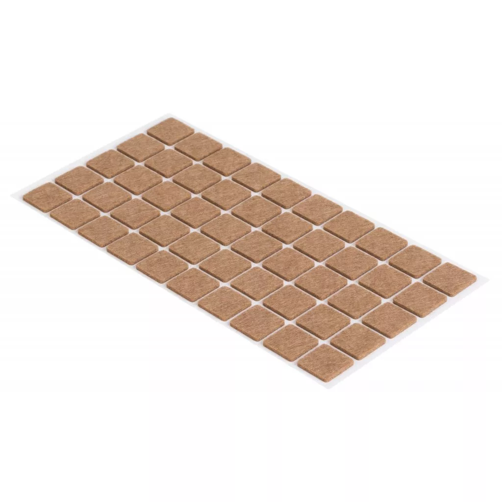 20x20 mm-es, világosbarna színű, öntapadós filcpárnák. Védi a felületeket a karcolásoktól.