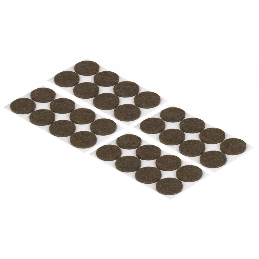 30 mm átmérőjű, barna színű, öntapadós filcbetétek. Védi a padlót a karcolásoktól.