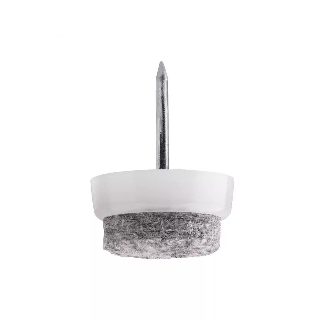 Filc csúszka 20 mm átmérőjű szeggel, fehér színben. Alkalmas bútorok alá szegezéshez.
