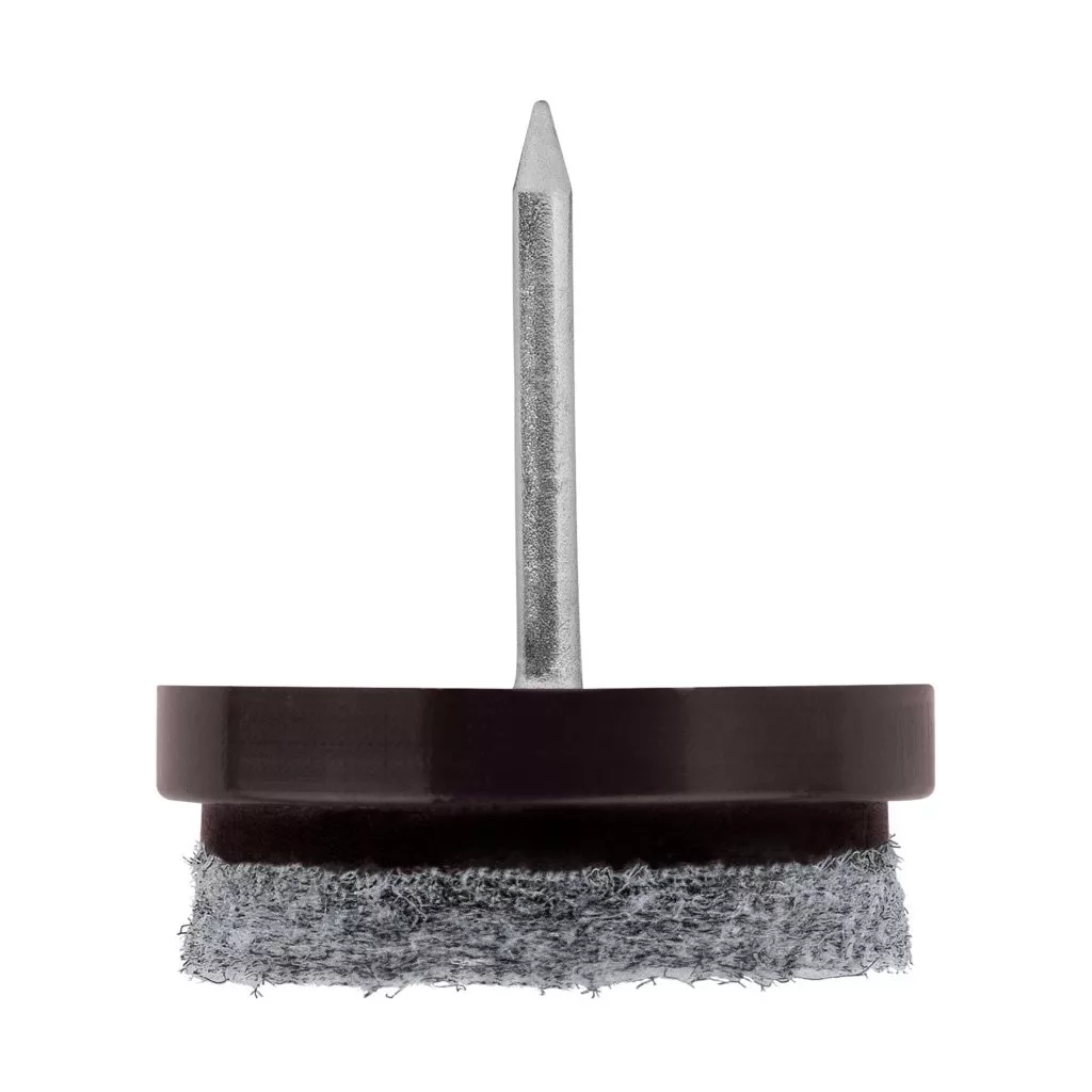 Filc csúszka 24 mm átmérőjű szeggel, barna színben. Alkalmas bútorok alá szegezéshez.