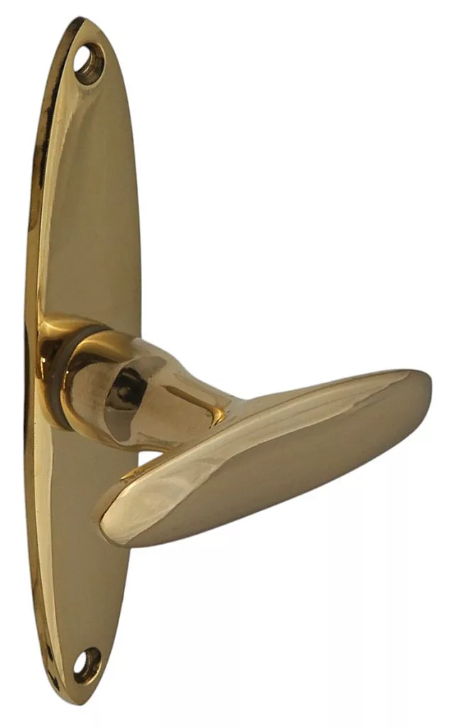 Ablakkilincs réz alapanyagból lakkal védett felülettel. A sild és kilincs ívelt.