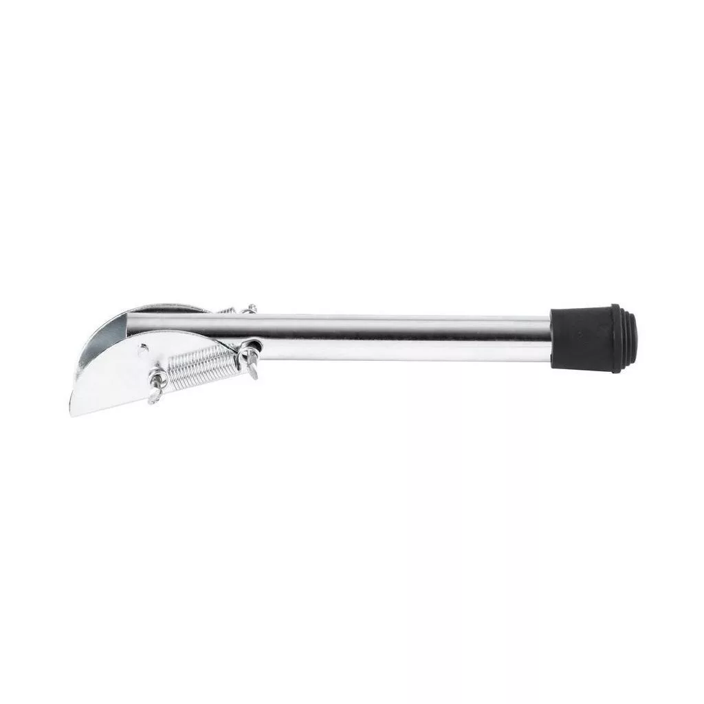 Horganyzott fém garázskapu tartó, 14 mm átmérővel és 150 mm magassággal. A tartó teljes magassága a szerelőlappal együtt 180 mm. Megakadályozza a kapu spontán bezáródását.