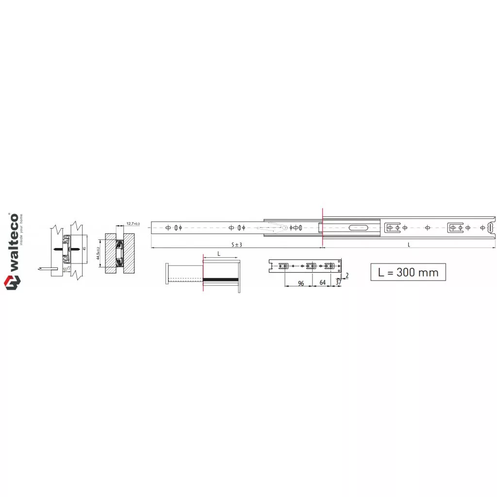 Teljes kihúzású, golyóscsapágyakkal, 300 mm hosszú