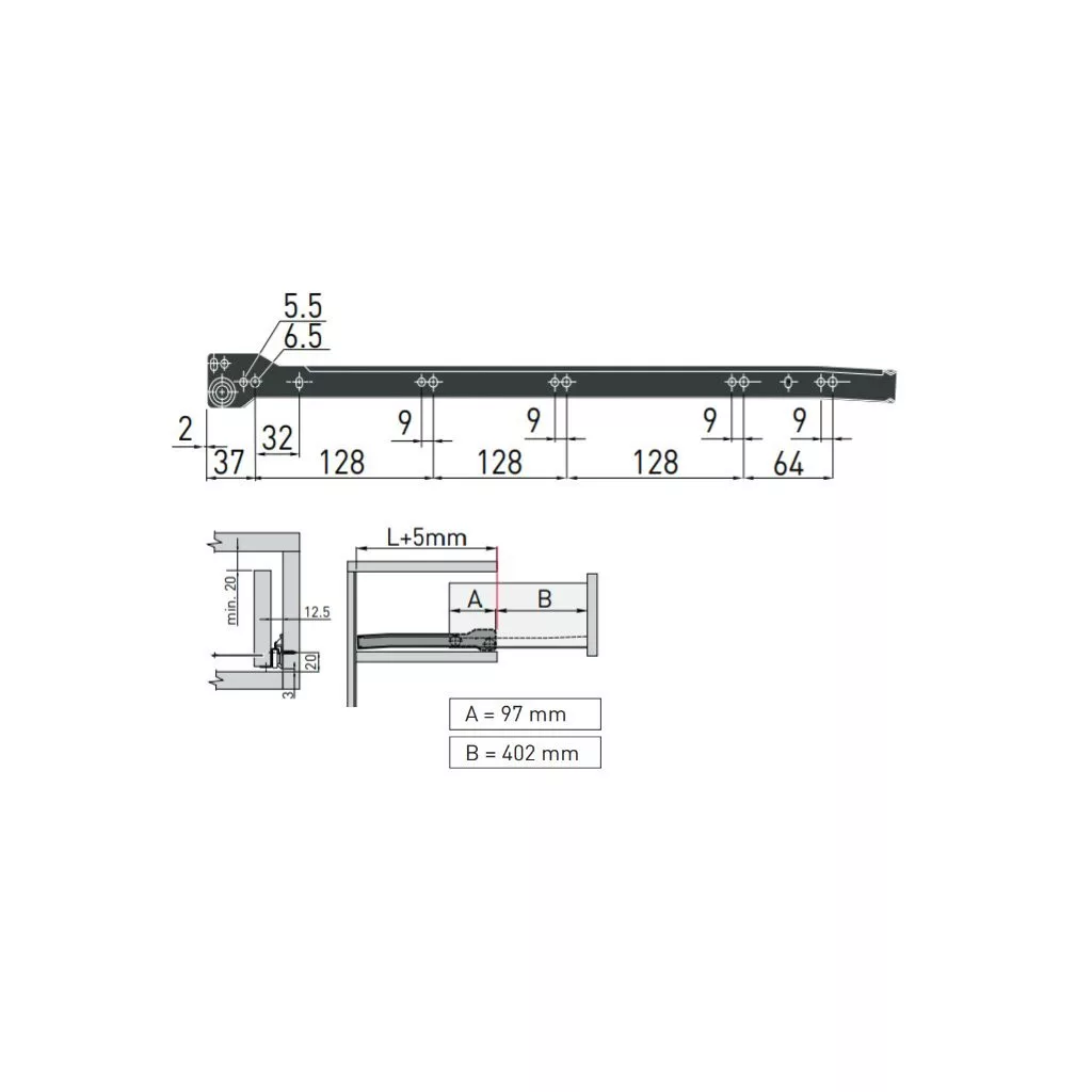 Görgős fiók 500 mm fekete teherbírás 20 kg 1 pár