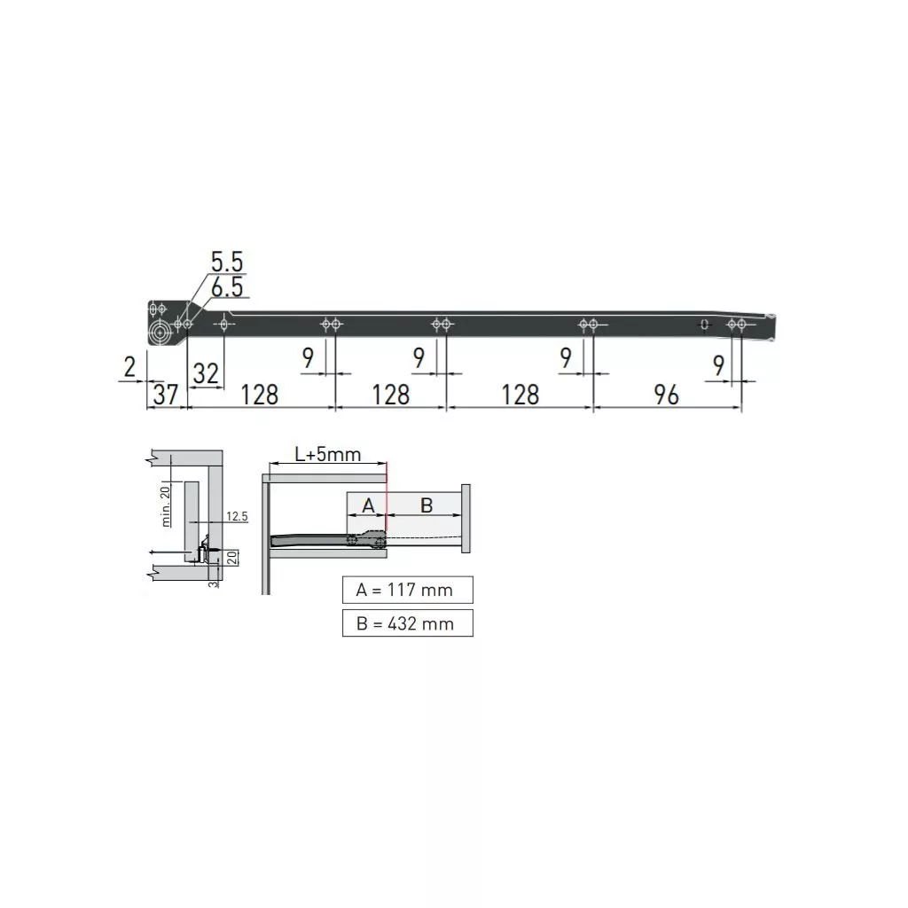 Görgős fiók 550 mm fekete teherbírás 20 kg 1 pár