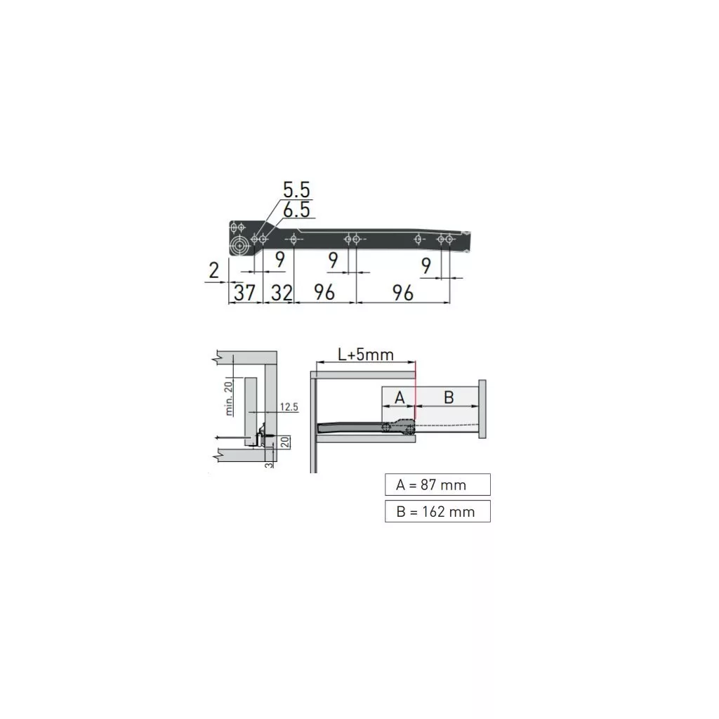 Görgős fióksín 250 mm fekete teherbírás 20 kg 1 pár