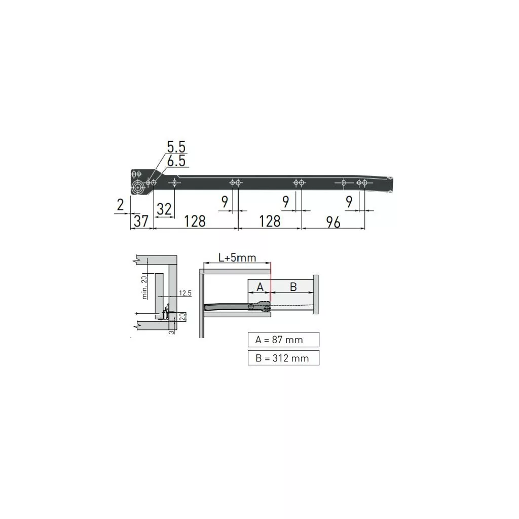 Görgős fióksín 400 mm fekete teherbírás 20 kg 1 pár