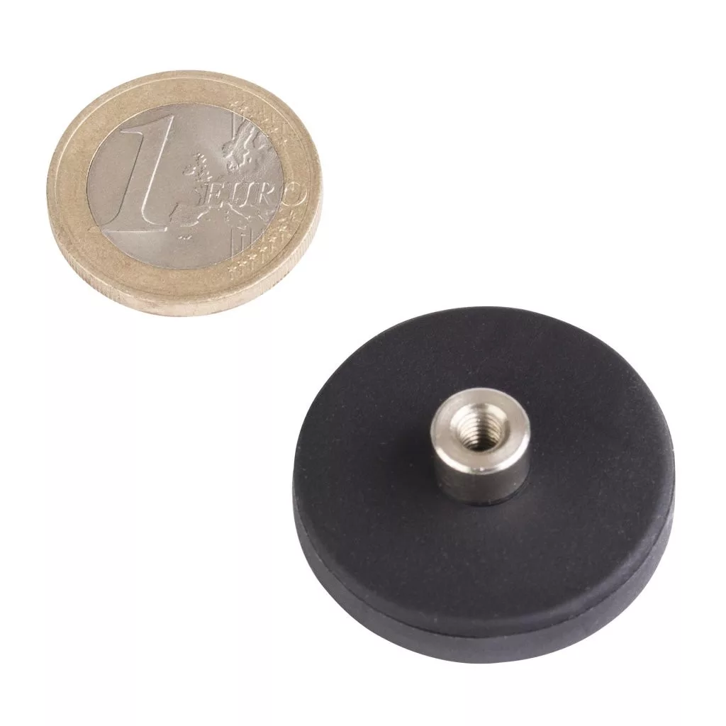 Gumírozott neodímium mágnes 31 mm átmérőjű M4 menettel teherbírás 11 kg