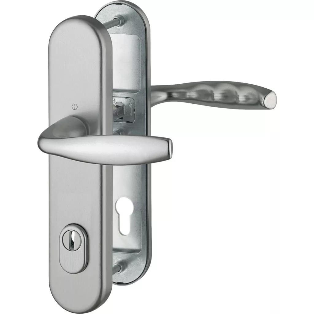HOPPE NEW YORK Hosszúpajzsos Biztonsági Kilincsgarnitúra PZ92  ezüst eloxált