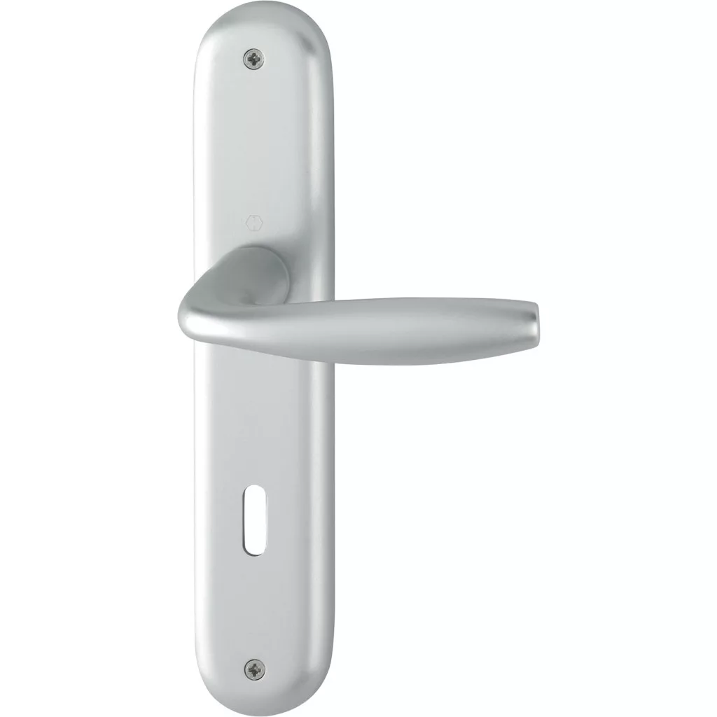 A HOPPE NEW YORK hosszúpajzsos BB biztonsági kilincsgarnitúra klasszikus, mégis modern megjelenést kínál beltéri ajtókhoz. Letisztult formavilága és ezüst eloxált felülete jól illeszkedik a legtöbb enteriőrbe, legyen szó lakásról vagy irodáról. A hosszúpajzsos kialakítás egységes, rendezett látványt biztosít az ajtólapon, miközben diszkréten takarja a zár körüli felületet.