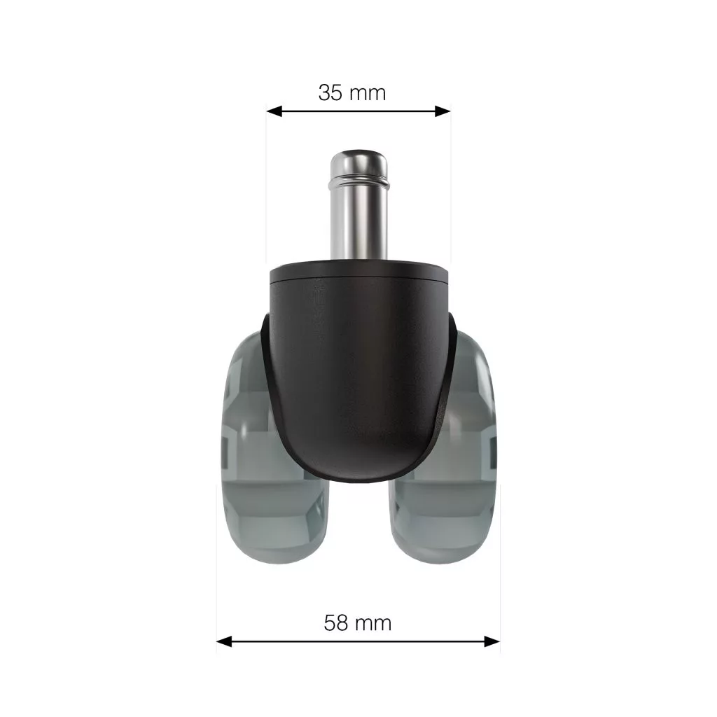 Irodai székhez való, 11 mm-es csappal ellátott, 50 mm átmérőjű, 300 kg (60 kg/1 db) teljes teherbírású irodai görgőkészlet. A csomag 5 db görgőt tartalmaz. Segítünk a bútorgörgők kiválasztásában.