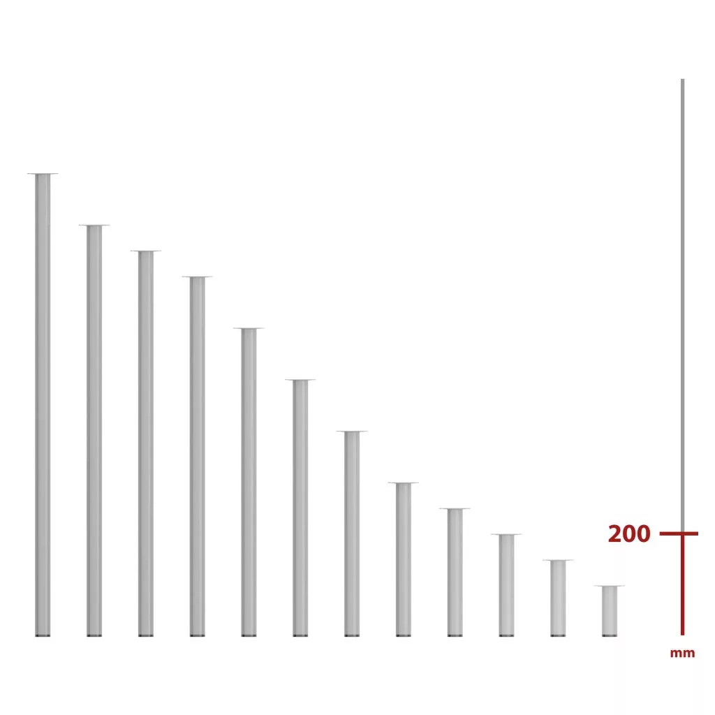 200 mm magas, szürke színű, kerek bútorláb, amely stílusos dizájndarabpá varázsolja bútorát. Méret: 60x60mm.