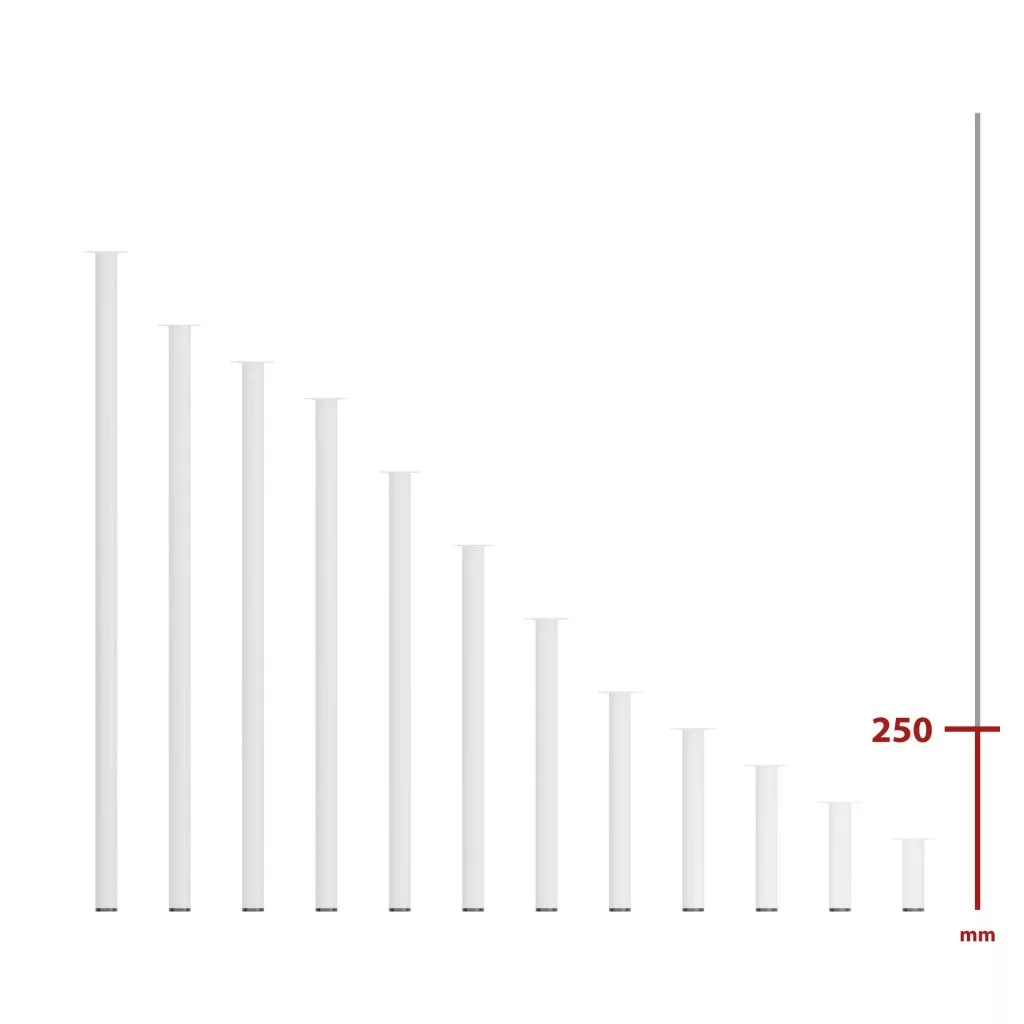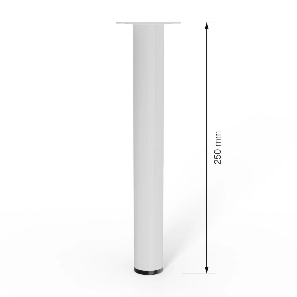 Kerek bútorláb, 250 mm magas, fehér színben, stílusos dizájndarabpá varázsolja bútorát. Méret: 60x60mm.