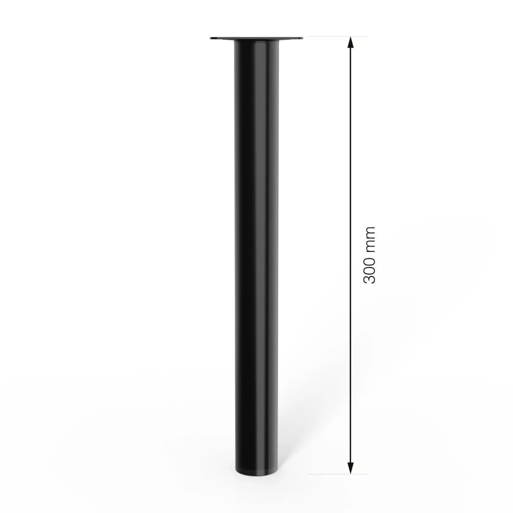 Kerek bútorláb, 300 mm magas, fekete színben, stílusos dizájndarabpá varázsolja bútorát. Méret: 60x60mm.