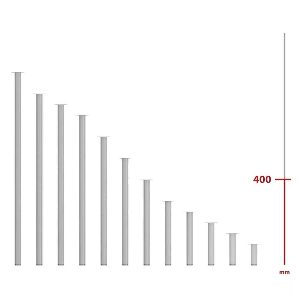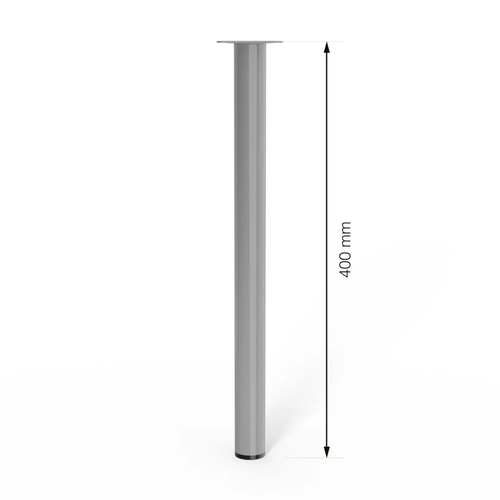 A kerek bútorláb, 400 mm magas, szürke színben, stílusos dizájndarabpá varázsolja bútorát. Méret: 60x60mm.
