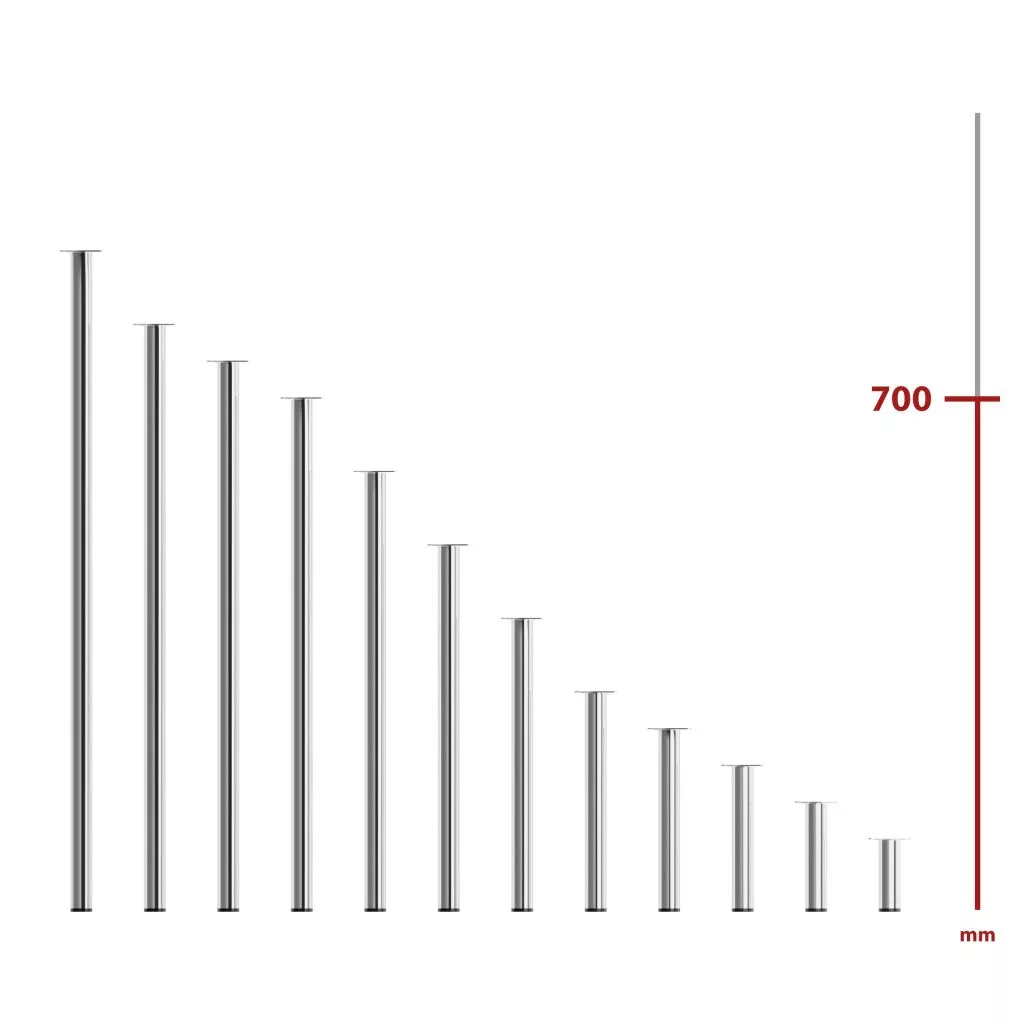 A 700 mm magas, krómozott, kerek bútorláb stílusos dizájnelemmé varázsolja bútorát. Méret: 60x60 mm.