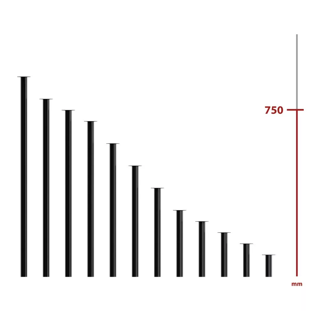 Kerek bútorláb, 750 mm magas, fekete színben, stílusos dizájndarabpá varázsolja bútorát. Méret: 60x60mm.