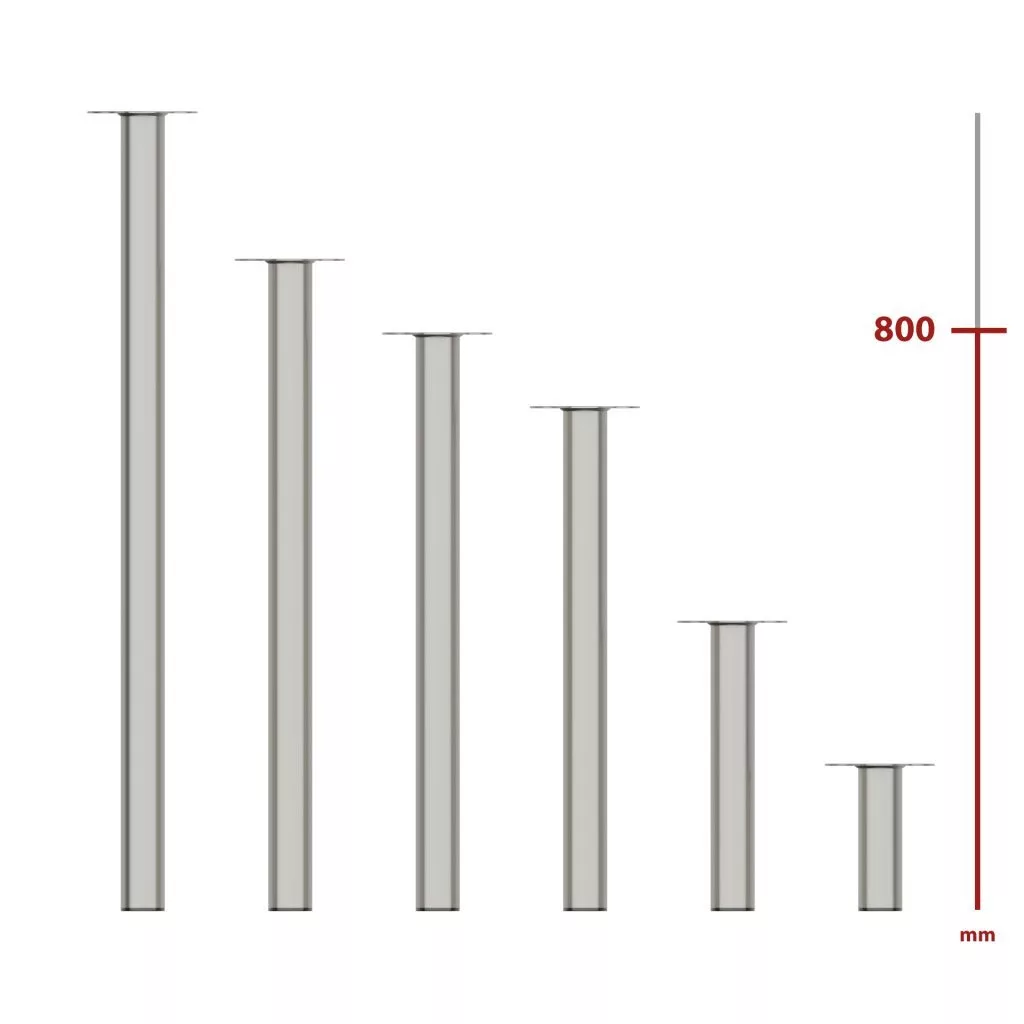 A 60 mm átmérőjű és 800 mm magas, szálcsiszolt nikkel felületű, kerek bútorláb stílusos dizájndarabpá varázsolja bútorát.