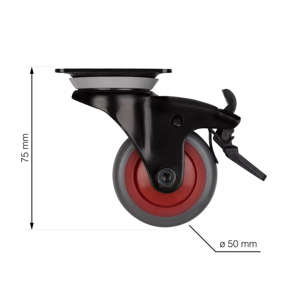 Készülékgörgő kemény padlóra 50 mm átmérőjű forgatható talppal fékkel teherbírás 50 kg