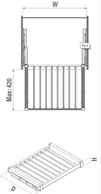 Kihúzható nadrágtartó és tároló oldalra szerelhető Tandem R fehér 600mm