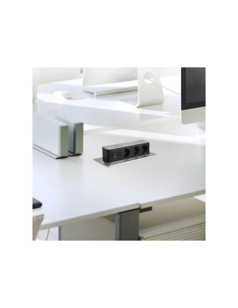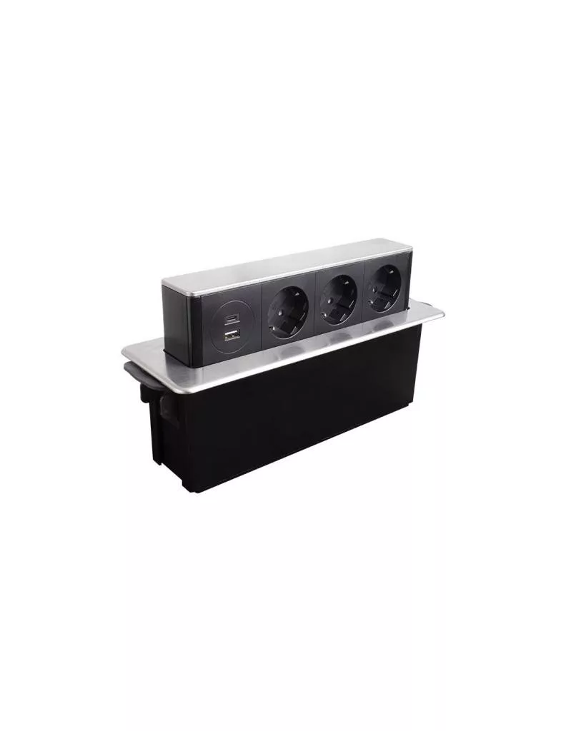 Konnektor Hopbox 3-as + 1 USB A + 1 USB C inox