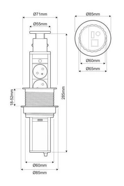 Konnektor Liftbox felhúzható 3-as + 2USB inox