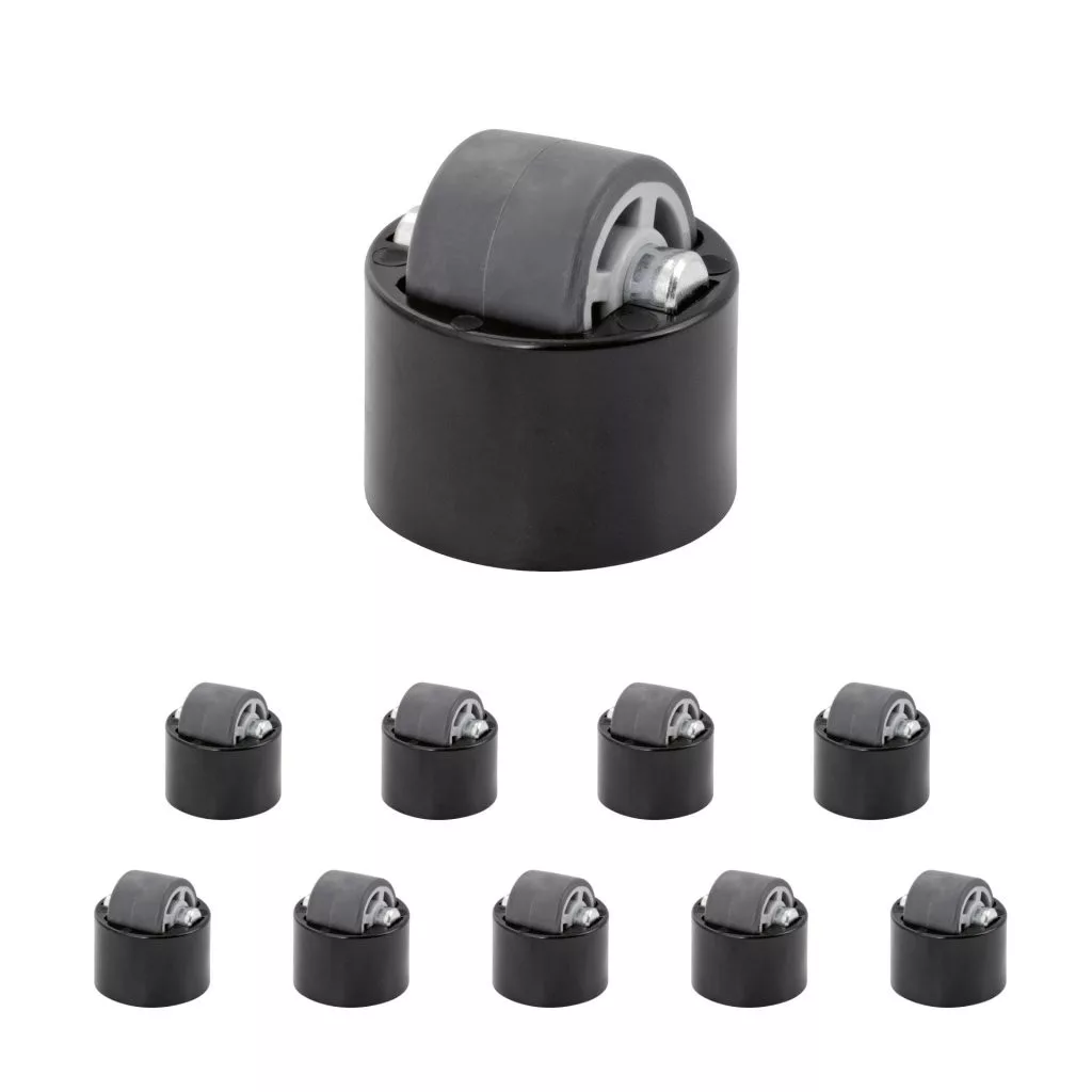25 mm átmérőjű konténerkerék kemény padlóra tervezve. Teherbírás akár 50 kg.