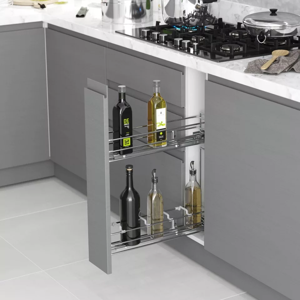 Konyhai kosár fékes részleges kihúzású "R" balos króm 150mm Megbízható kialakításának köszönhetően széles körben alkalmazható. Felépítése ellenáll a rendszeres igénybevételnek. Megbízható működése hosszú távon is biztosított. Alkalmas bútorokhoz, ajtókhoz vagy egyéb szerkezetekhez. Egyszerűen szerelhető, így gyors munkavégzést tesz lehetővé. Kialakítása a megbízhatóságot és a praktikus használatot helyezi előtérbe.