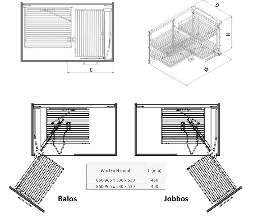 Konyhai sarokmechanizmus "R" részleges kihúzású - balos króm 450mm Ez a termék ideális választás különböző szerelési feladatokhoz. Masszív kivitele stabil rögzítést tesz lehetővé. Kialakítása pontos rögzítést és tartós használatot biztosít. Ideális választás szakemberek és barkácsolók számára egyaránt. Egyszerűen szerelhető, így gyors munkavégzést tesz lehetővé. Kialakítása a megbízhatóságot és a praktikus használatot helyezi előtérbe.