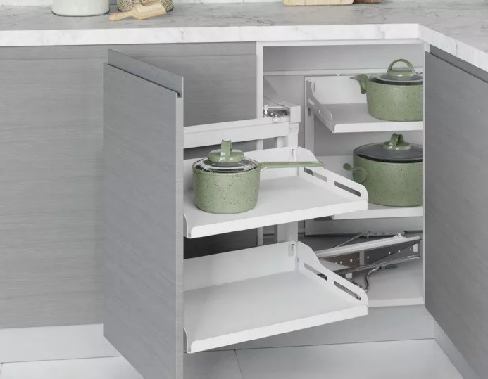 Konyhai sarokmechanizmus Unique "R" részleges kihúzású - balos fehér 450mm