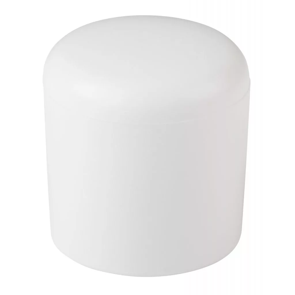 Fehér műanyag kupak, 22 mm belső átmérővel. A kupakok 22 mm külső átmérőjű talpra rögzíthetők.