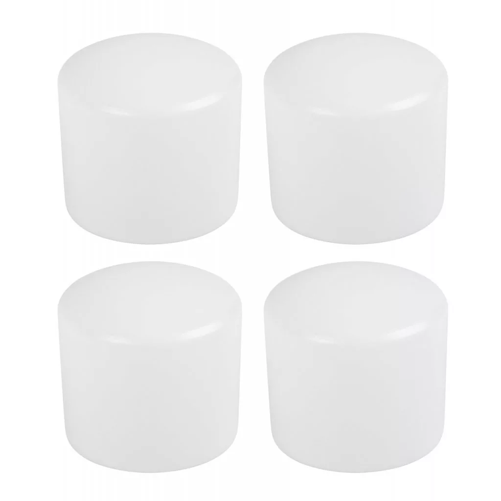 Fehér műanyag kupak, 25 mm belső átmérővel. A kupakok 25 mm külső átmérőjű talpra rögzíthetők.