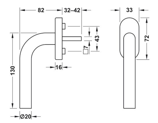Rozsdamentes kilincs bukó-nyíló ablakokhoz is! A kilincsben lévő tengely lyuk mérete: 7x7 mm.