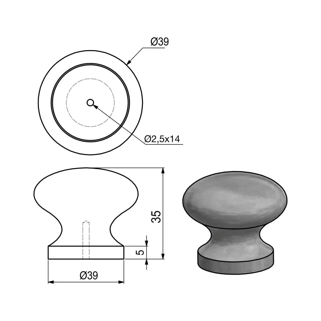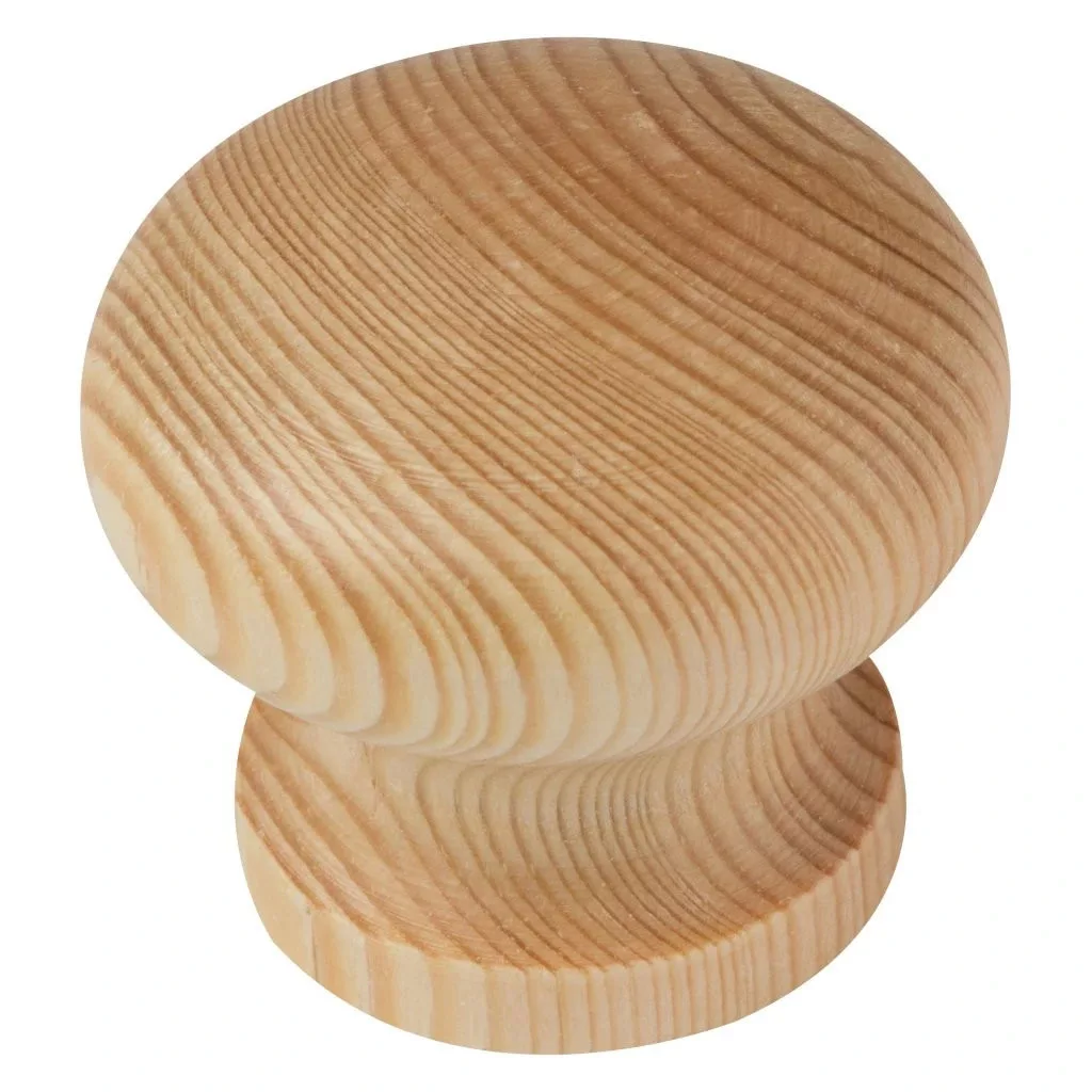 Lava fa bútorgomb lakkozott fenyőfából, 39 mm átmérőjű és 35 mm magas. Rögzítőcsavarral együtt.