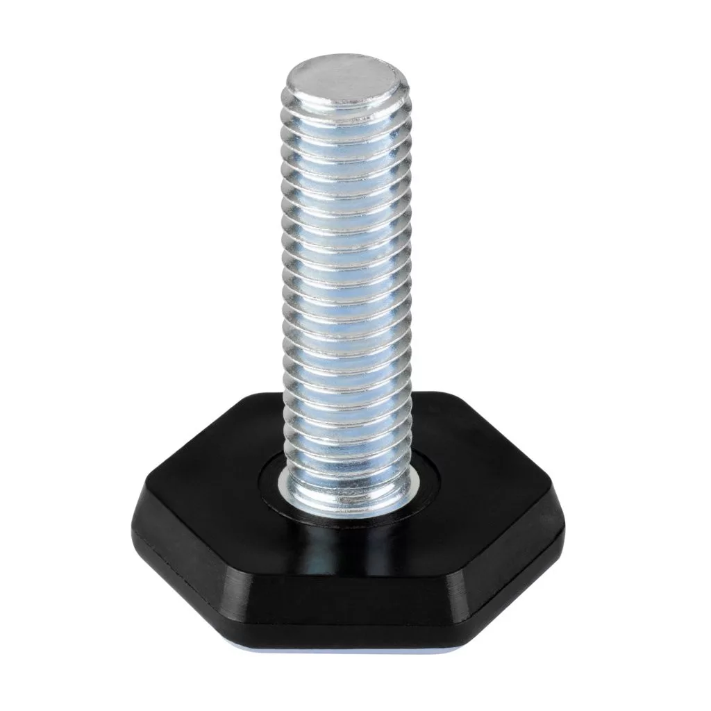 Világosszürke színű, hatszögletű PTFE talpú beállító csavar, 30 mm átmérővel, M10 menettel és 35 mm magassággal. A csomag 2 db-ot tartalmaz.