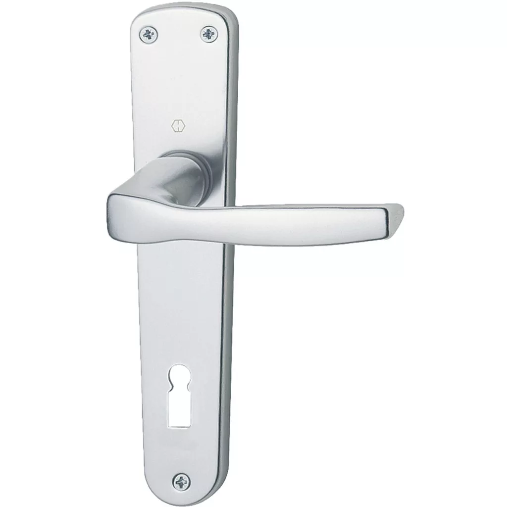 Az F1 ezüst eloxált felület tartós, kopásálló megoldást kínál, amely jól illeszkedik a legtöbb ajtószínhez és lakberendezési stílushoz. A semleges, matt hatású ezüst tónus diszkréten emeli ki az ajtó megjelenését, anélkül hogy túl dominánssá válna.