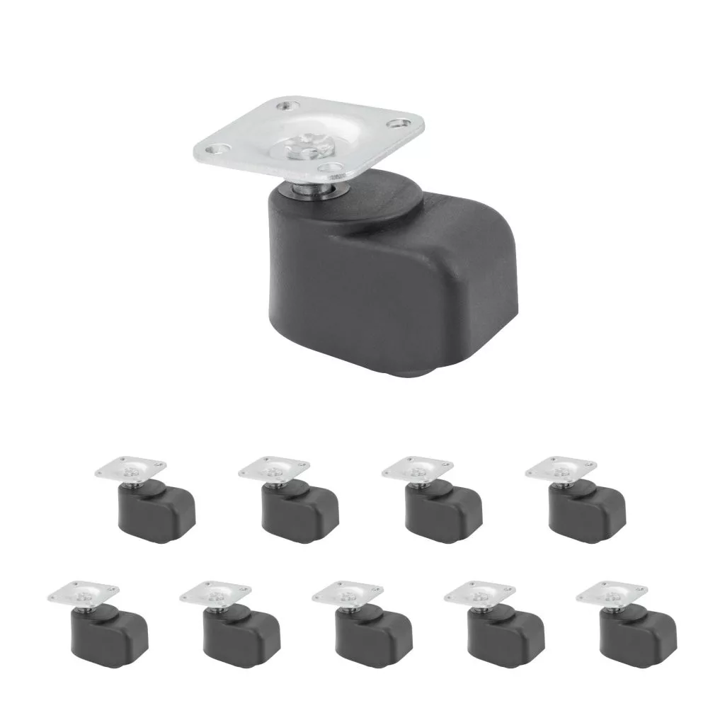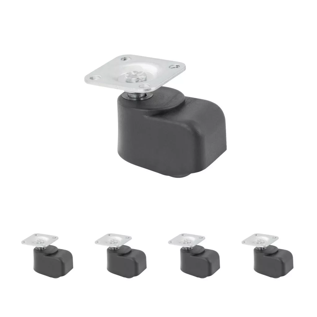 MINI bútorkerék 25 mm átmérővel és 50 kg dinamikus teherbírással. Görgőmagasság 48 mm, 38 x 38 mm-es talppal. Kemény padlóra tervezve.