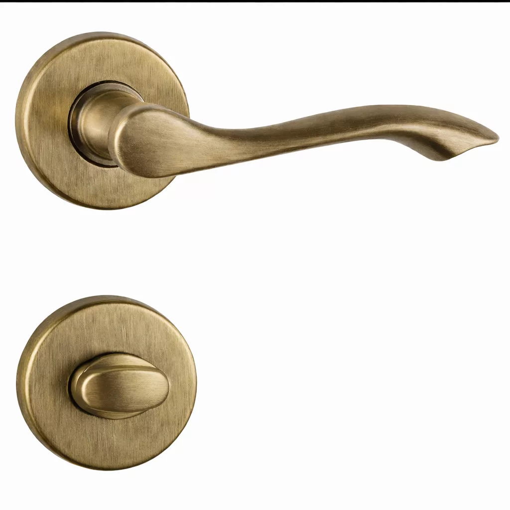 Rusztikus jellegű antikolt rozettás ajtókilincs. A modern antik vonal képviselője. Tökéletesen követi napjaink újító trendjét. Méretei: Kilincs hossz: 155mm Körrozetta átmérő: 52mm Ajtókilincs NEM RÉZ alapanyagból készül amely felülete antikolt jellege sárgás-fekete színű és lakkal védett. Rugós működtetésű kilincs. Ajtócímke rozetta átmérője: 50 mm sild magassága:11 mm Kilincsméret:115 mm. A fogantyú lágyan hajlított kézhez álló kidolgozású. Szolidan de mégis kecsesen ékesítheti ajtaját. Általános használatra rusztikus-klasszikus lakásokba kiváló választás.