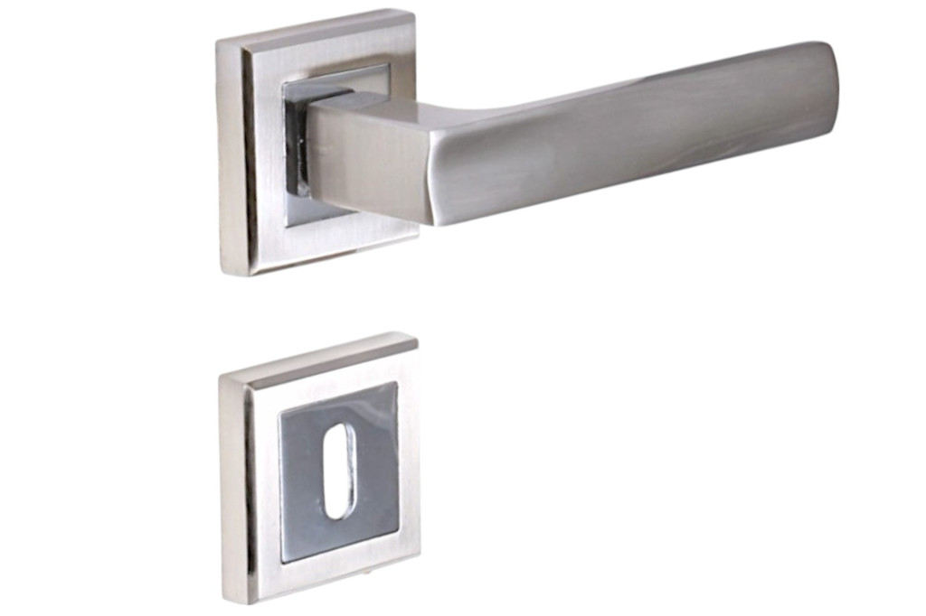 Maffia Négyzetrozettás Szatén Króm Felület BB Gomb/Kilincs