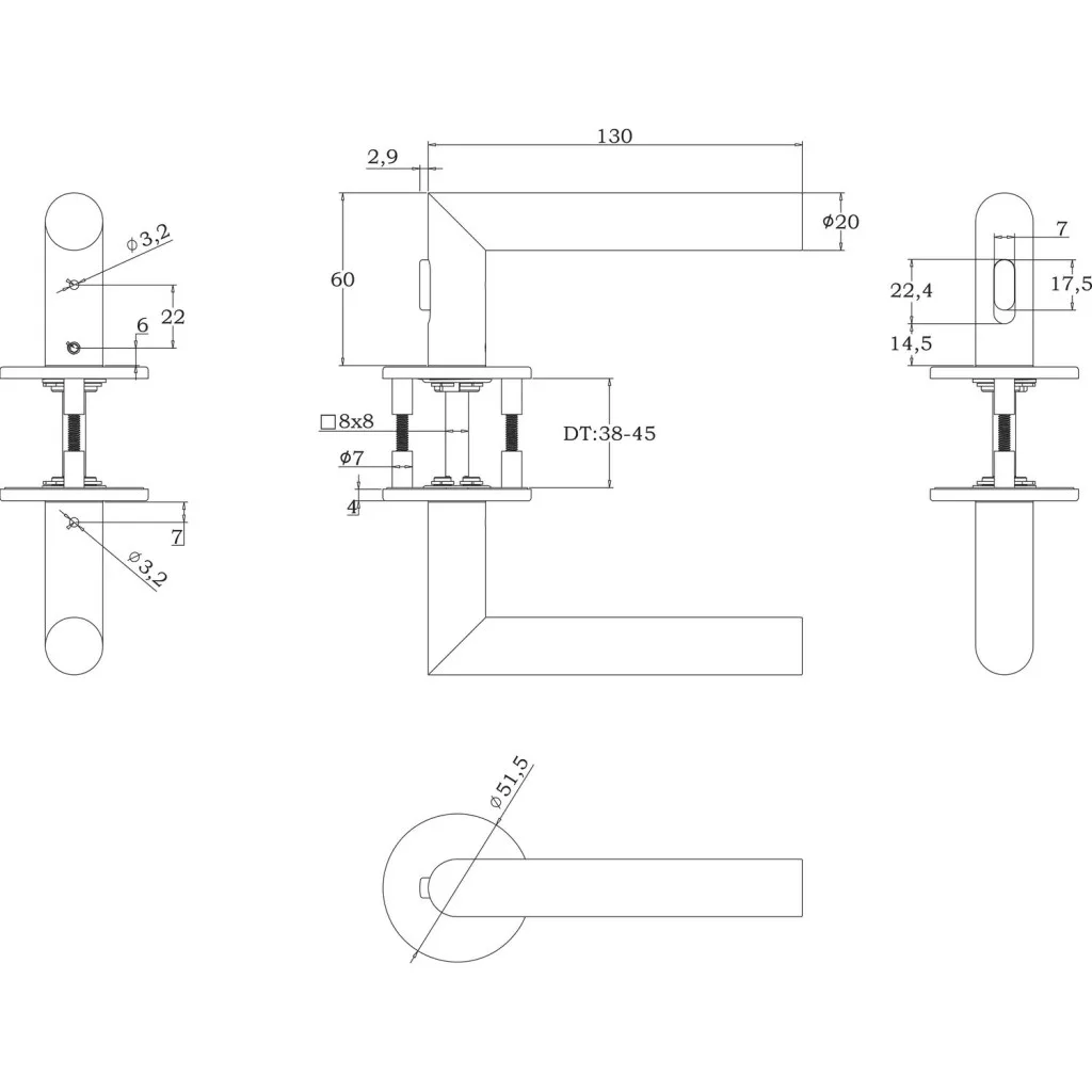 Rozetta mérete (mm) : ø 51,5 x 4