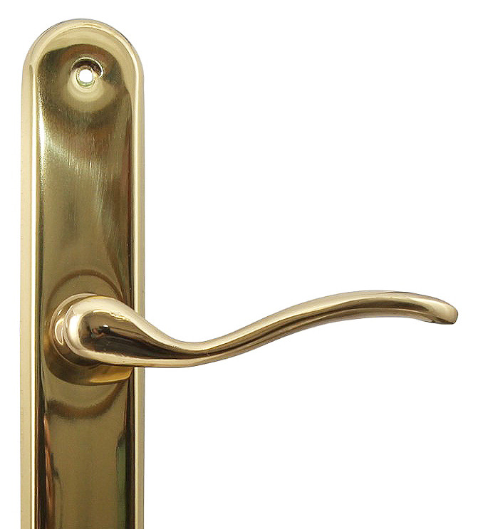 A kilincs rézből készül, felülete lakkal védett. Rugós működtetésű. Ajtócímke méret: 235 mm X 35 mm. Kilincsméret:110 mm.
